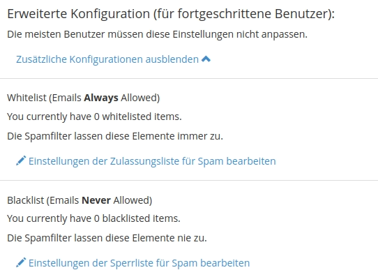 Umgekehrt kannst du Adressen, die fälschlicherweise akzeptiert werden, in die Blacklist (auch: Denylist, Blockliste) setzen, damit sie immer als Spam eingestuft werden.