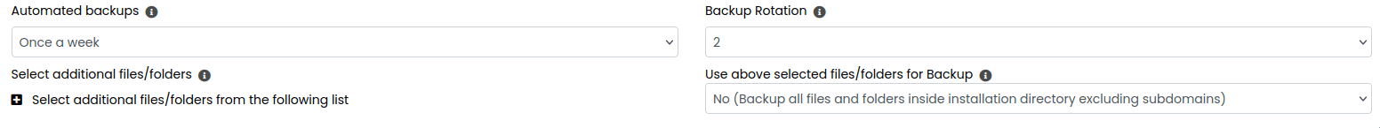 Unter „Automated backups“ kannst du einstellen, wie oft Backups gemacht werden. Unter „Backup Rotation“ wählst du aus, wie viele Backups jeweils in deinem Account gespeichert bleiben. Das älteste wird dann beim nächsten Backup gelöscht.