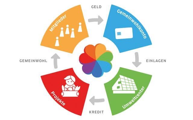 Das Gemeinwohlkonto des Umweltcenters der Raiffeisenbank Gunskirchen ist ein exklusives Angebot für Mitglieder der Genossenschaft für Gemeinwohl. Es funktioniert wie jedes andere Girokonto. Für jeden Euro auf dem Gemeinwohlkonto garantiert das Umweltcenter der Raiffeisenbank Gunskirchen die Finanzierung gemeinwohlgeprüfter Vorhaben in derselben Höhe. Dafür steht dessen gemeinwohlgeprüfte Umweltgarantie.